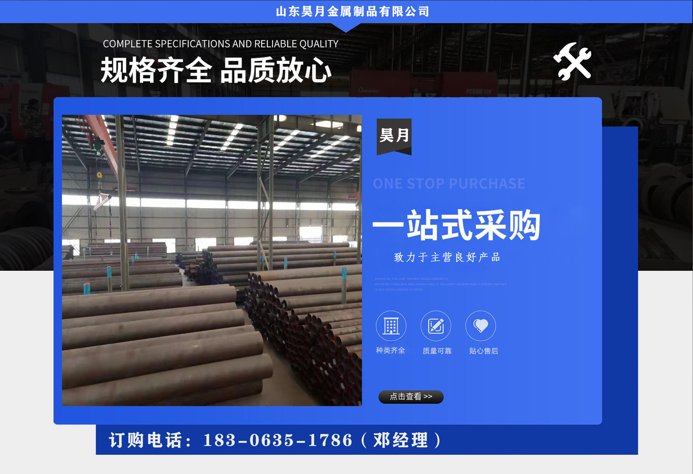 山東昊月金屬制品有限公司是一家鋼材企業。經營ND鋼管,ND無縫鋼管,考登鋼管,09CrCuSb鋼管,空氣預熱器用耐酸鋼管等?! 》兆谥迹簛淼綗o貨包損失、貨不滿意不裝車、辦完手續再付款 本公司全體員工向關心和支持我們的各級領導和各界朋友表示誠摯的謝意! 始終堅持以市場為導向,不斷壯大企業規模,提升企業核心競爭能力,力圖在短時間內,創造注漿管品牌,提供滿意的服務?! 」窘浝頂y全體員工恭候各地新老賓客光臨本鋼管供應公司,實地考察、指導工作、增進了解! 歡迎前來咨詢合作!...
